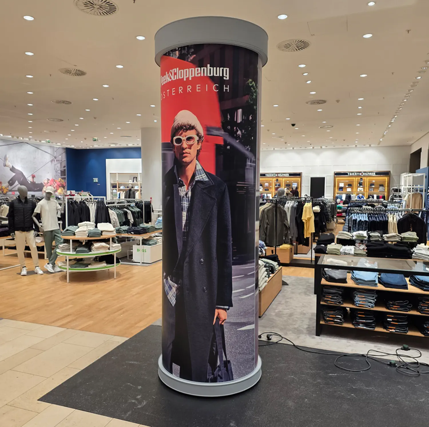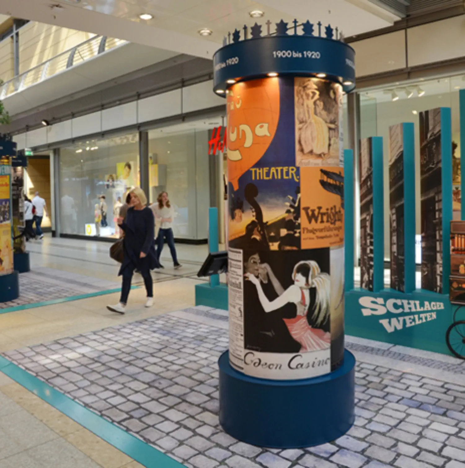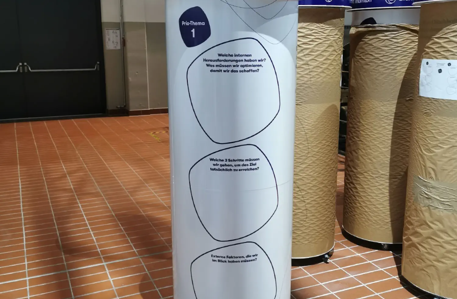 Litfaßsäulen mit feststellbaren Lenkrollen ausgestattet.